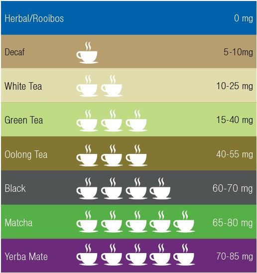 Caffeine content in tea is widely debated. The broad agreement is that tea contains about half the amount of caffeine that a cup of coffee does. The caffeine in tea is known as theophylline and theobromine, which are gentler stimulants than the caffeine found in coffee and have fewer side effects. Caffeine in tea is slowly released, moderated by L-theanine, resulting in prolonged, calm alertness without crashes. A few factors that influence caffeine level in tea include part of the plants, processing method all the way to how tea is brewed.